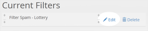 3. Under Current Filters are displayed all existing filters. Click Edit next to the appropriate one.