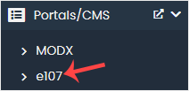4. On the left side, locate the Portal/CMS category. Click on it and then on the e107 link that appears.